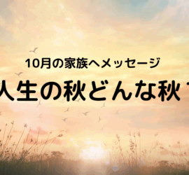 10月の家族へメッセージ【食欲の秋 運動の秋 カラダを整える秋 人生の秋、あなたはどんな秋?】2025年10月5日 in (インチ) 今月のメッセージ 10月の家族へメッセージ 【食欲の秋 運動の秋 文化の秋 カラダを整える秋・・・人生の秋、あなたはどんな秋?】 10月だと言うのにいつまでも暑いですね。みなさん、お変わりないですか? 2025年はコロナウィルスからの解放 […]